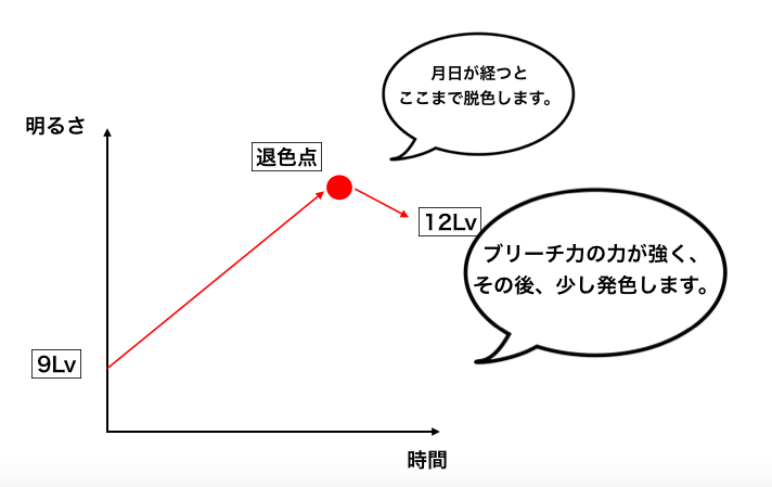 明るくする時の場合の方が、ブリーチ力を伴うため、色が退色した時に明るい状態に戻ることになります。