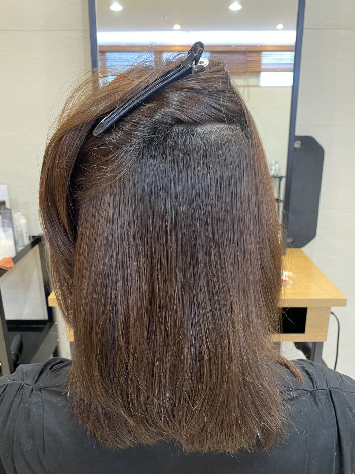 そして、ブローやアイロンによってまっすぐに並び替えた後、結合をくっつけます。