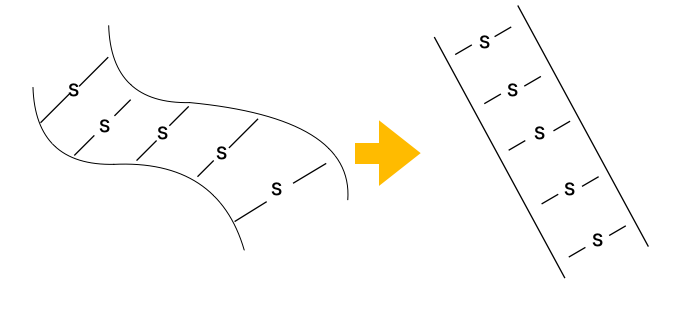 縮毛矯正とは、薬剤の力を使い毛髪内部の結合を切断、ブローとアイロンワークにより形状をストレートにして再結合させる技術のことです。