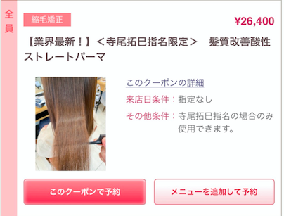 寺尾拓巳限定「酸性ストレートパーマ」 24000円(税抜き)
