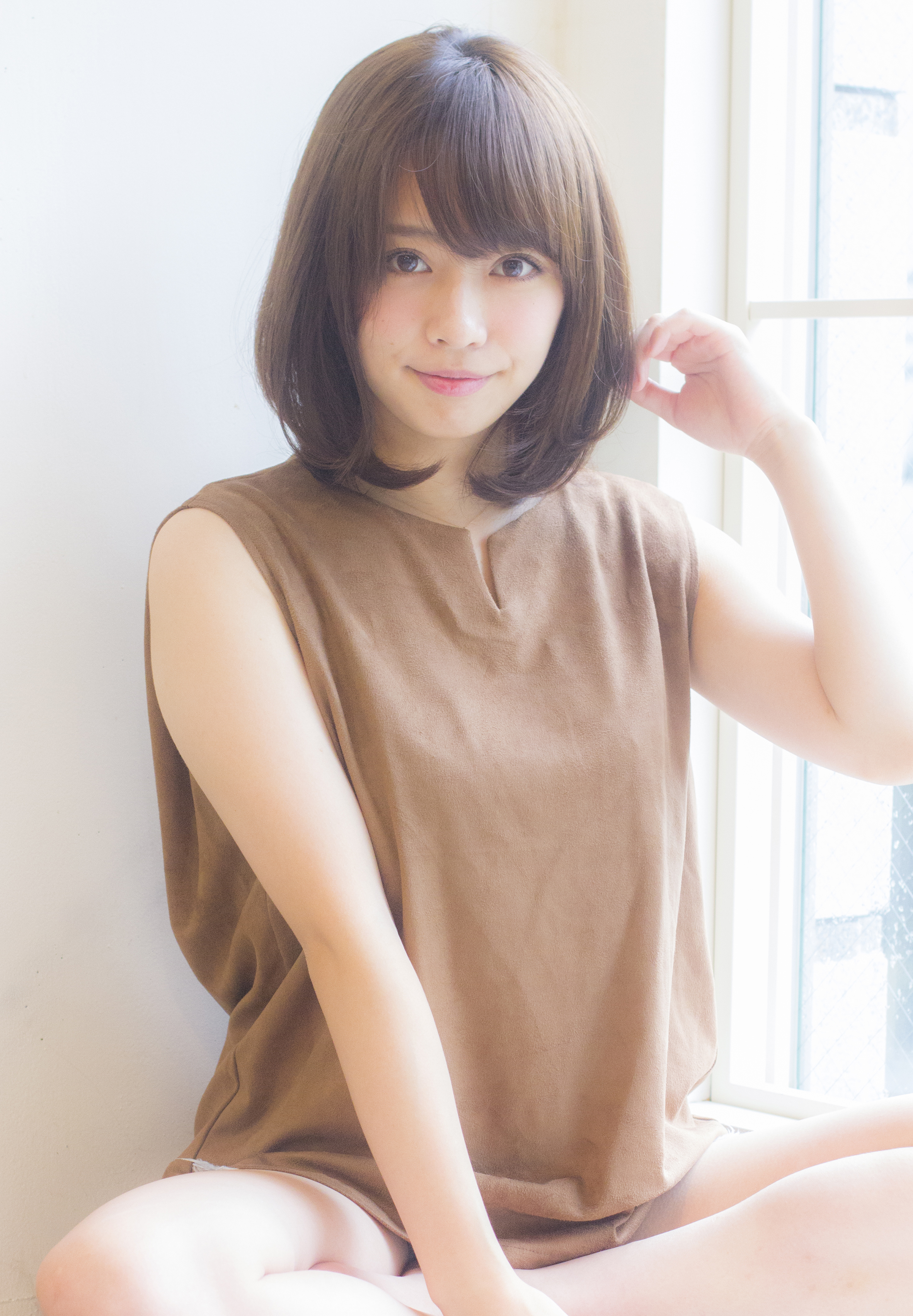 重めのベースでまとまりをよくして、表面と顔周りにレイヤー(段)をいれます。顔周りに動く毛束をつくることで抜け感が出て透明感のある印象になります。