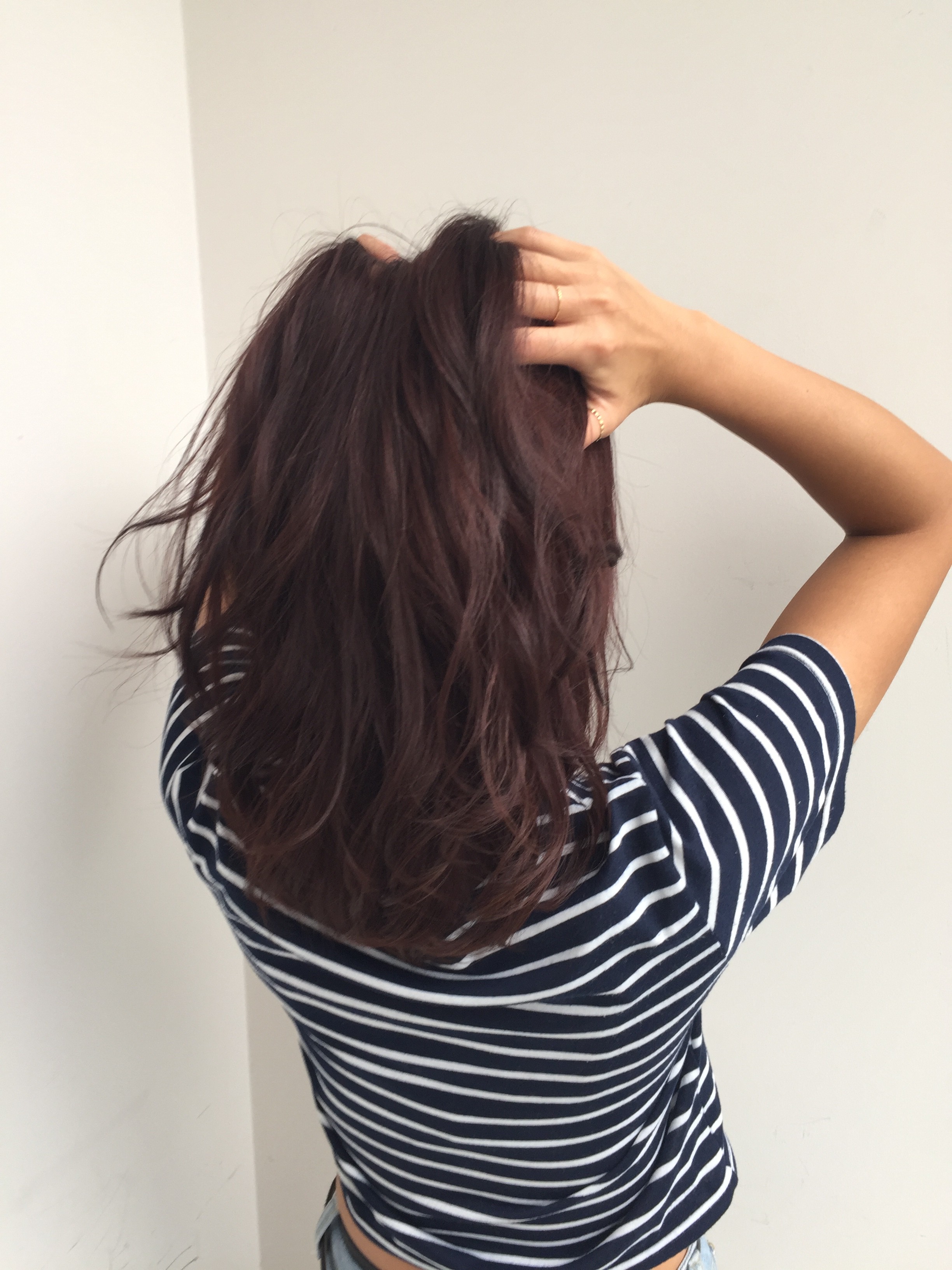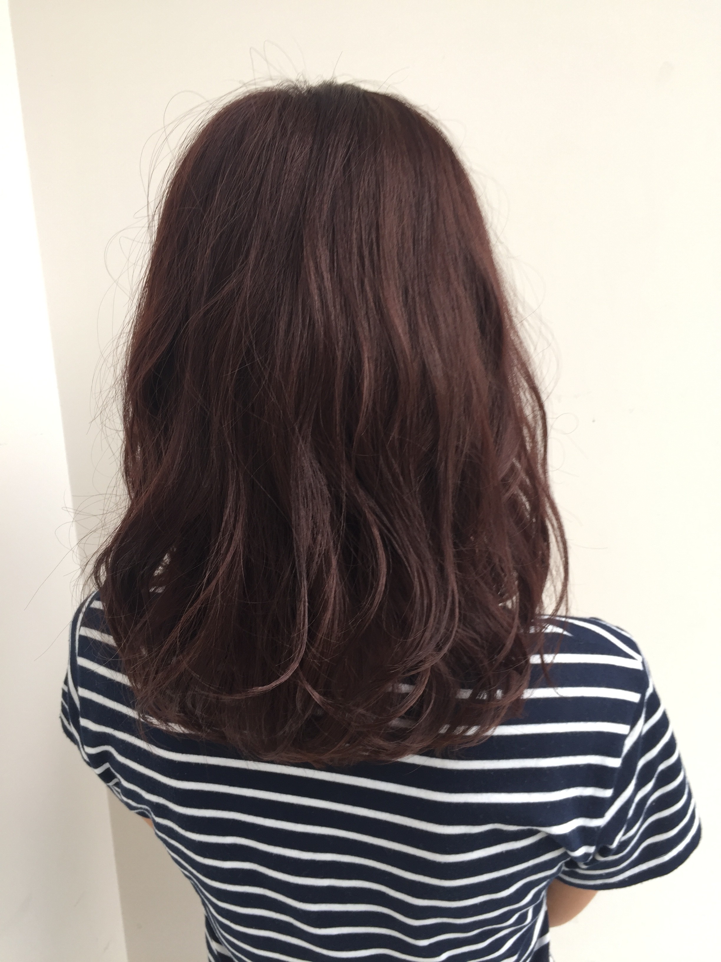今回は一気に秋冬っぽく、ボルドーカラーにしました(^O^)/黄色く抜けやすいミカミに対してはブラウンとピンクに対して、パープルをミックス♪