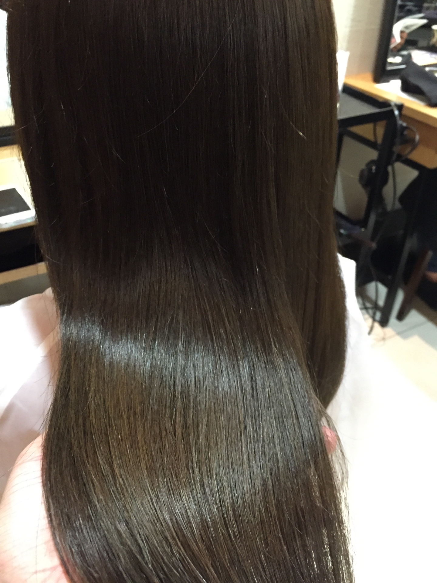 トリートメント成分が90%の薬、そして、アイロンも低温で通す低温加熱処理の2つのところから、まっすぐなりすぎることがないストレートになります!