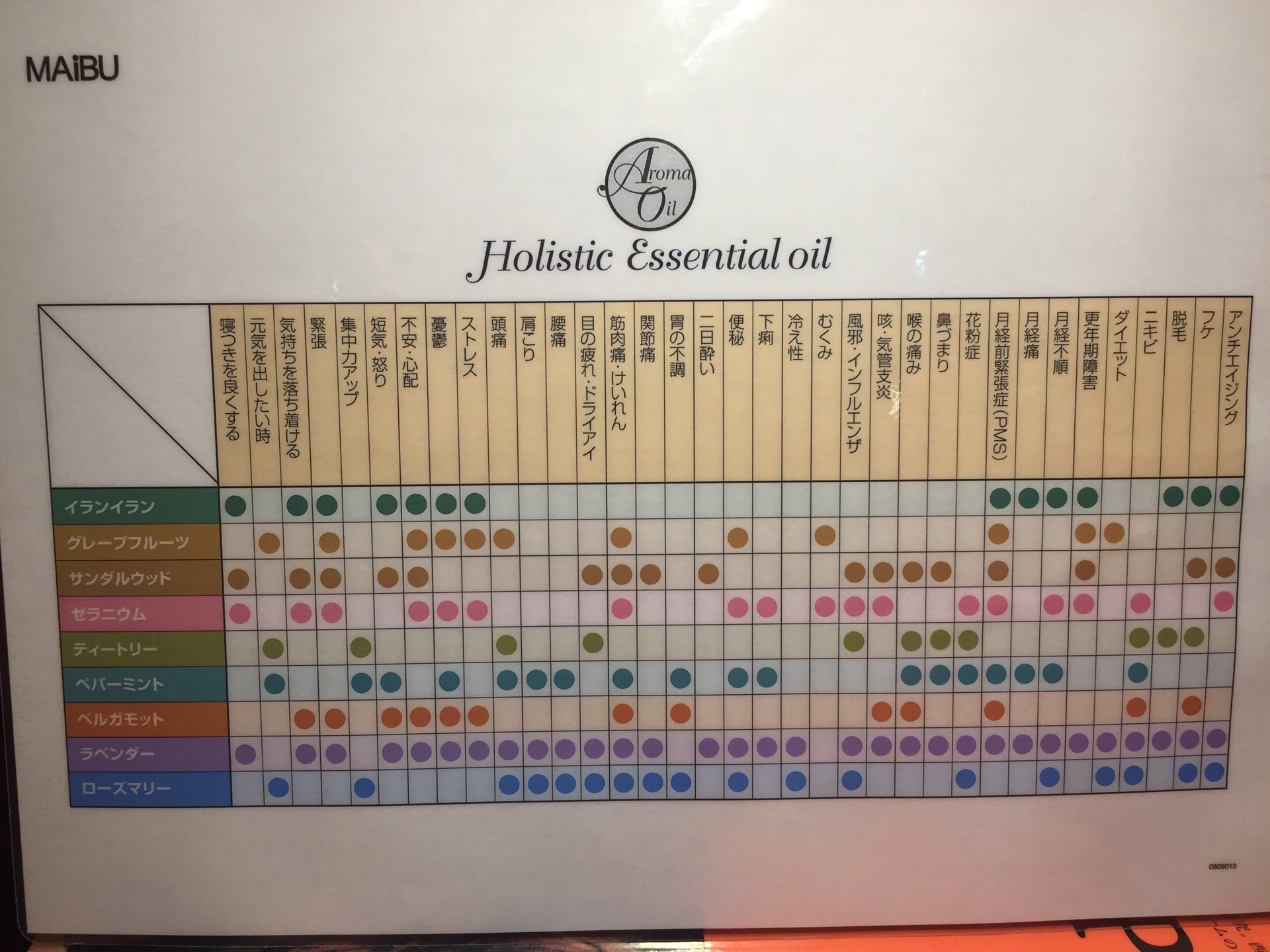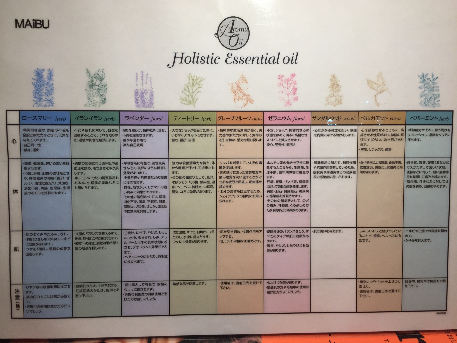 アロマオイルの特徴、効能に関しては、分かりやすい表も用意してますので、こちらを参考にしてください(^^)