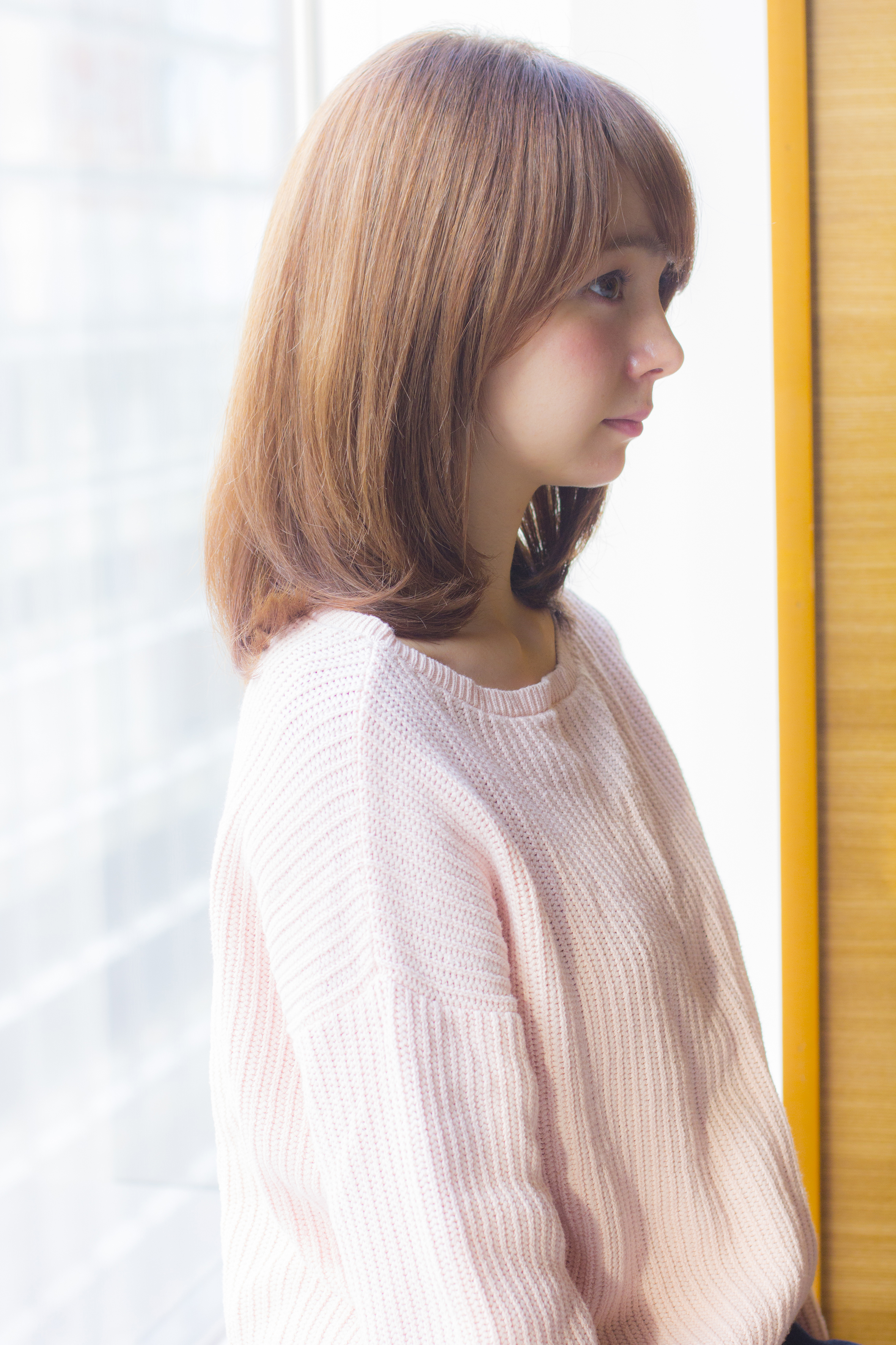 ベースは重めのミディアムスタイルです。ワンカールのふわっとした雰囲気が出るように間引くように質感を入れていきます。そして、さらに柔らかい抜け感が出るように少しレイヤー(段)を入れます!