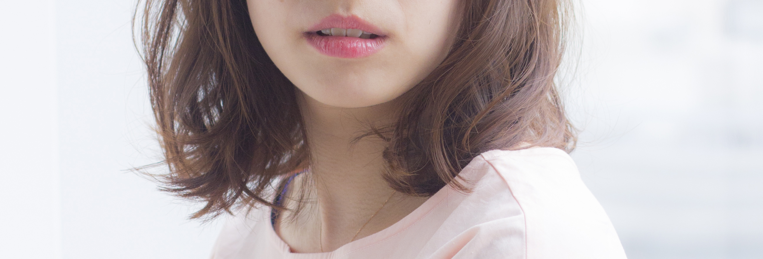 重めのあまりレイヤー(段)が入っていないミディアムスタイルに抜け感を出す質感調整と柔らかいパーマをかけることで、ふんわりした優しい雰囲気になります。