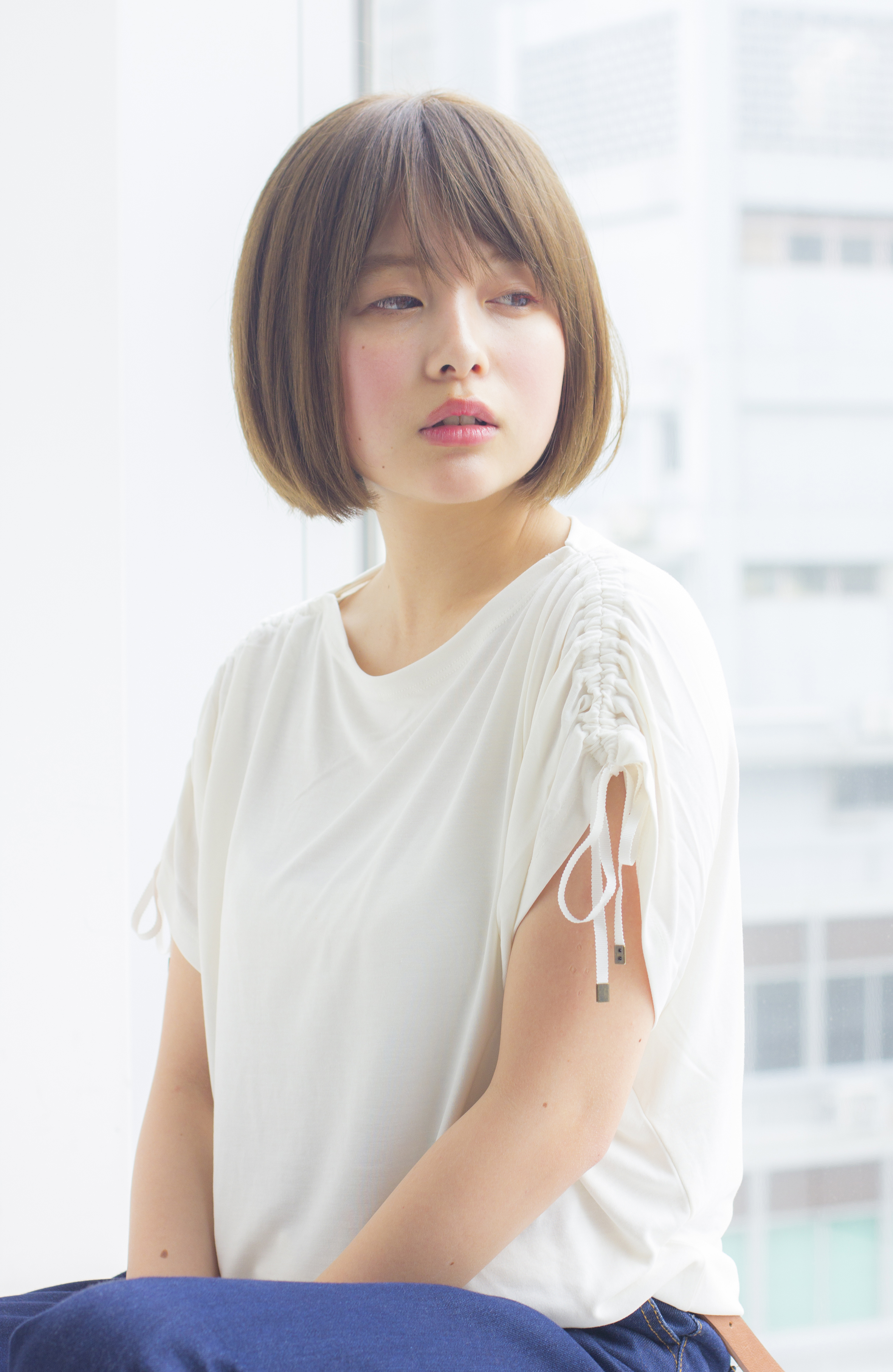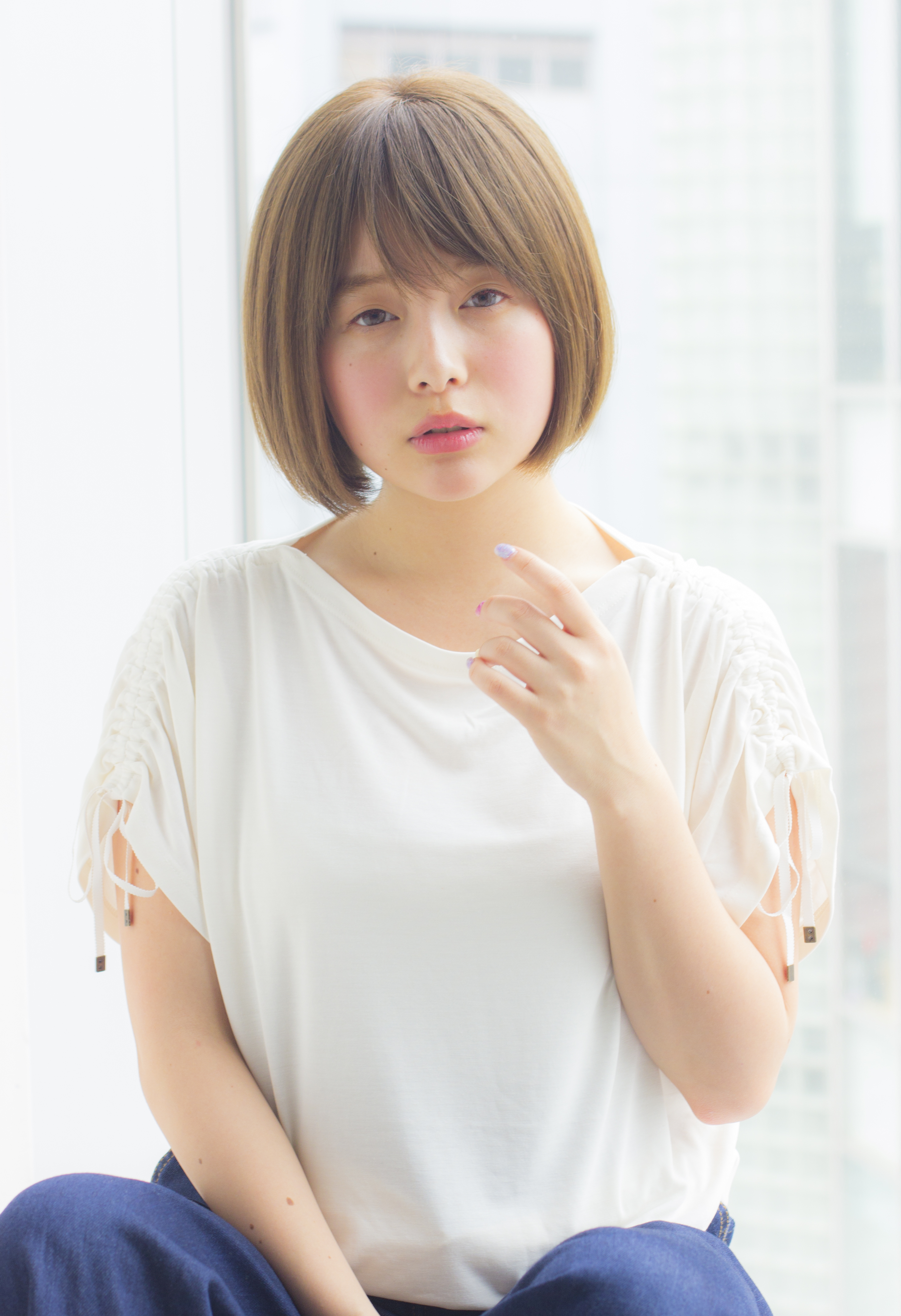 毛先のブラント感(まっすぐ感)をのこしたボブです。形と毛先のラインで重めには見えますが、質感を調節することで扱いやすくしています。