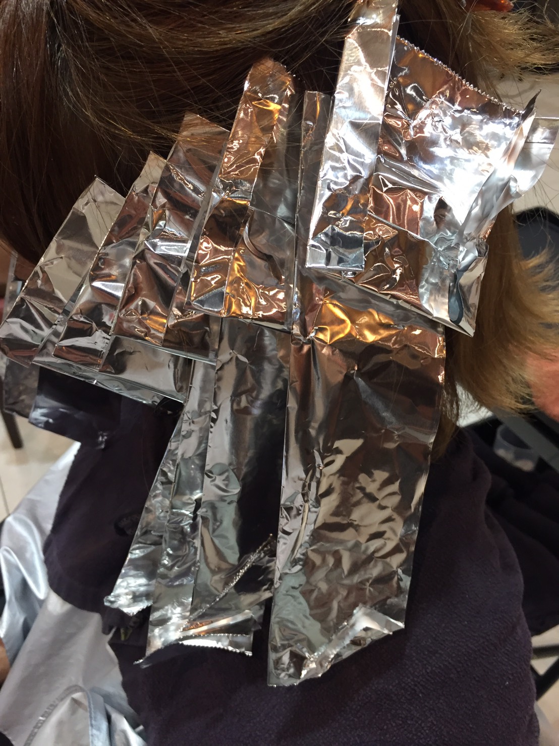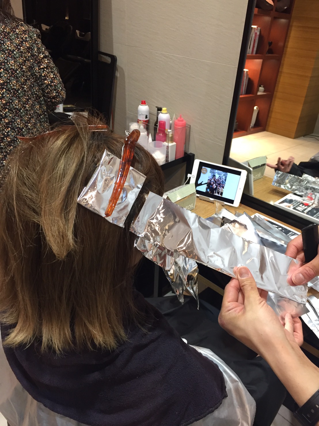 そのあと、入れたハイライトの間に、バレイヤージュでハイライトを入れます。