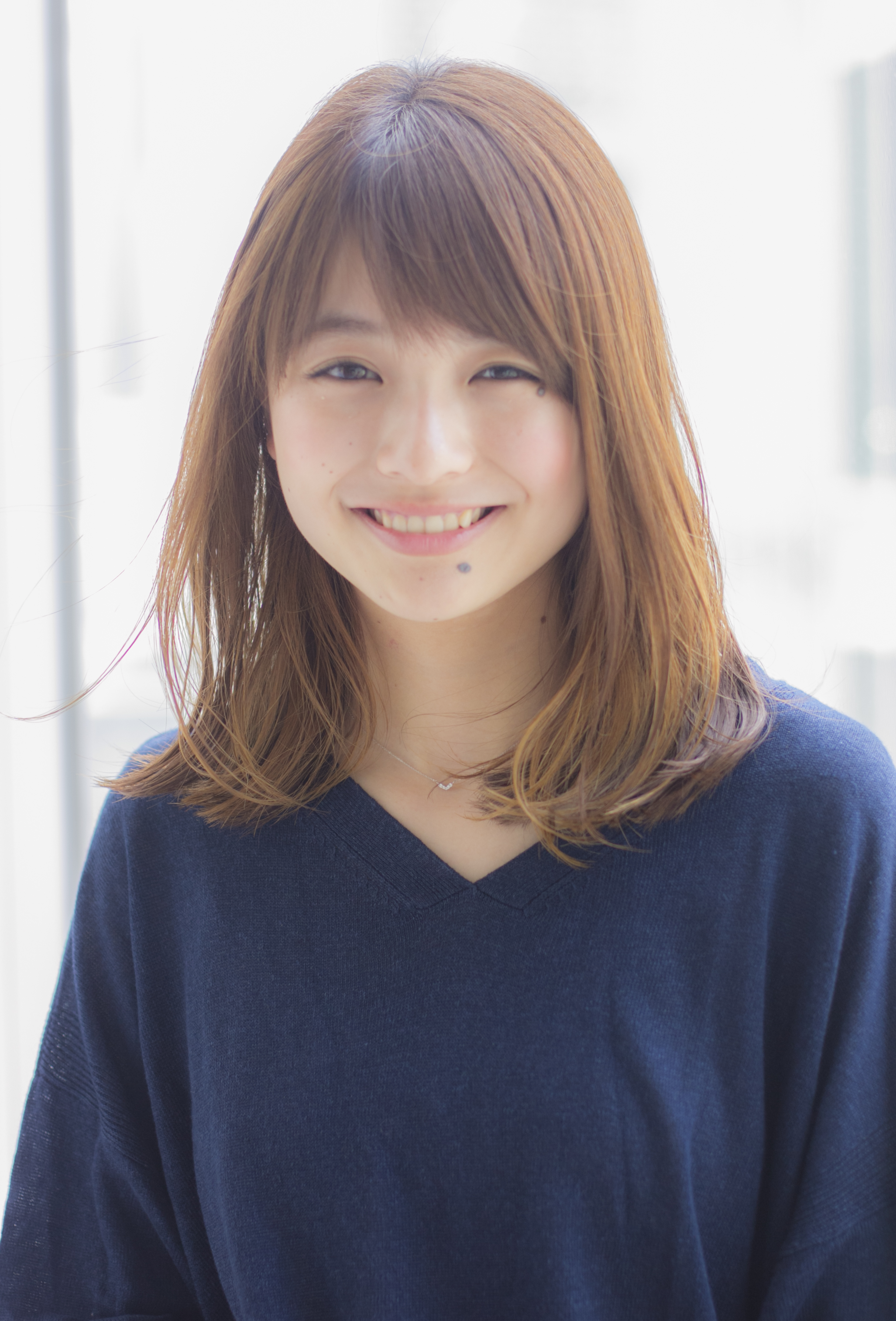 シルエットは重めのミディアムベースのスタイルです!少しハネやすい長さを利用して、柔らかい動きが出るように質感調整を行っています!