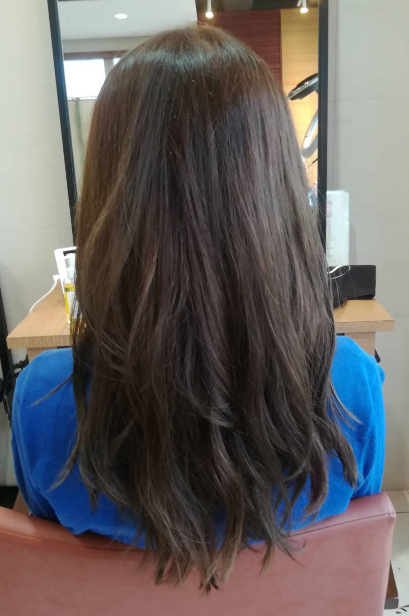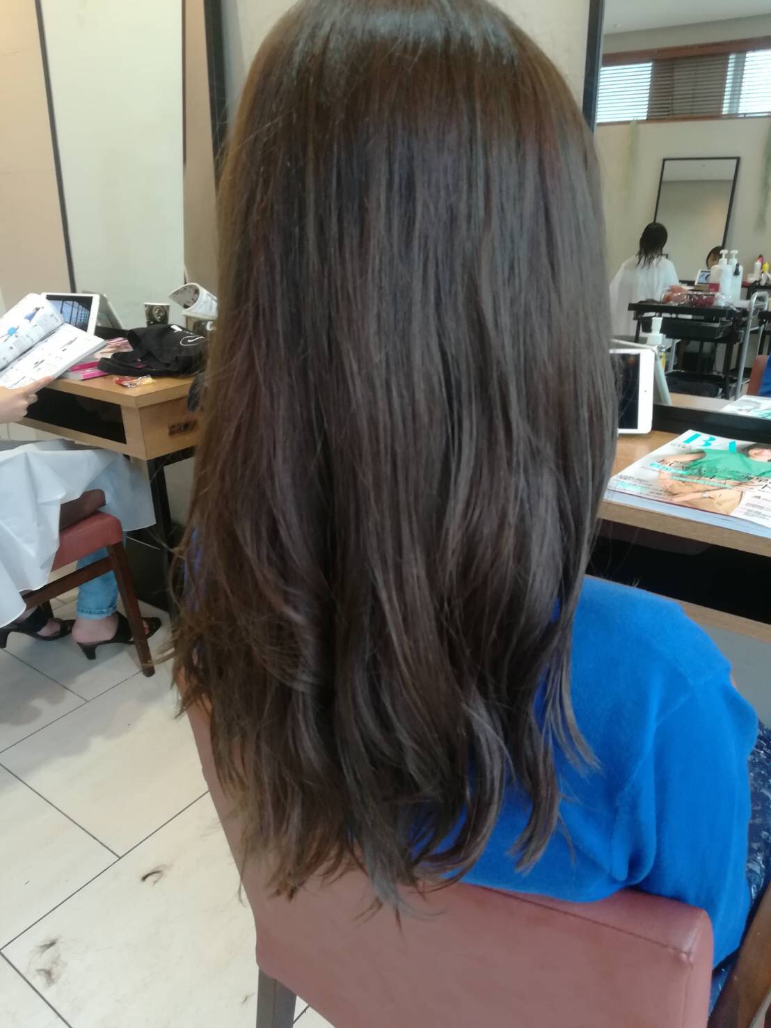 僕はアッシュとマット(緑)、という赤み抑えるカラーの2トップのうち、オレンジを打ち消すならアッシュを、赤みを打ち消すならマットを、使います!今回は季節柄、より赤みを抑えたかったので20%ほどマットをミックスさせてます♪