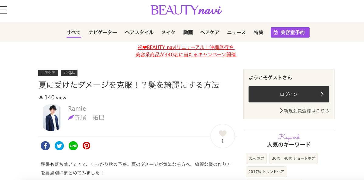 先月から、リニューアルされたBeauty-Naviさんにて、ナビゲーターを務めさせていただいてます♪