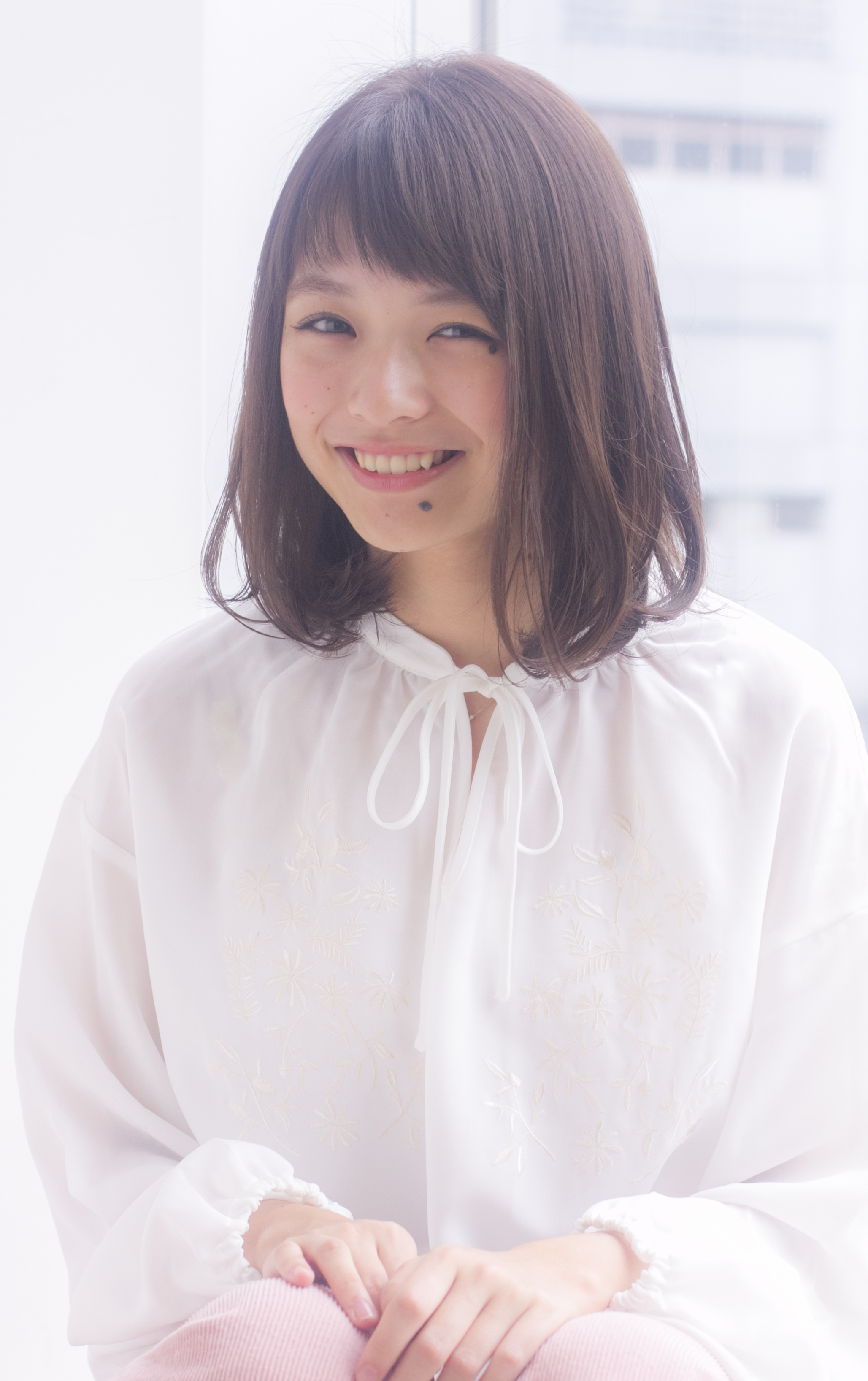 重めのミディアムベースのスタイルですが、表面にいつもより短めにレイヤー(段)を入れてます。