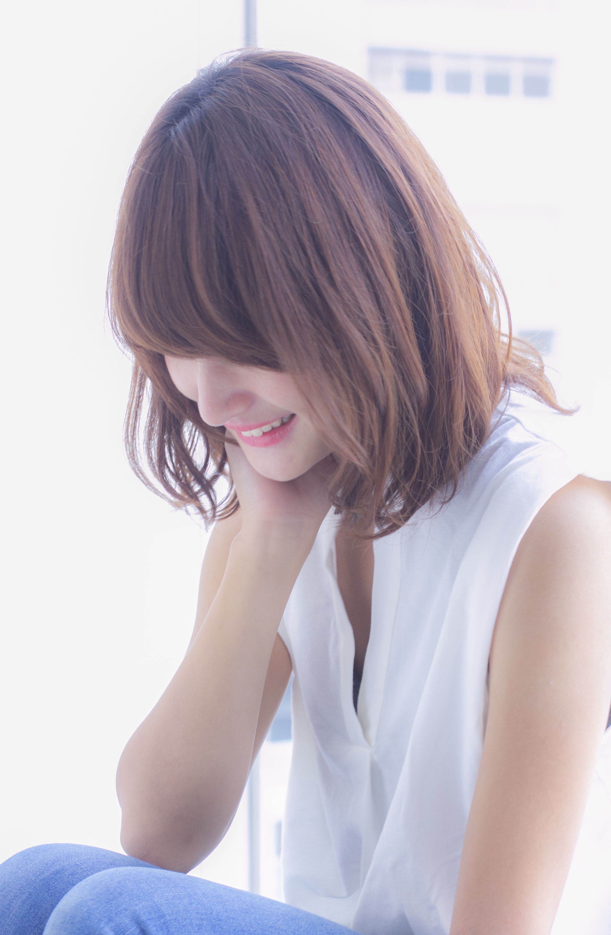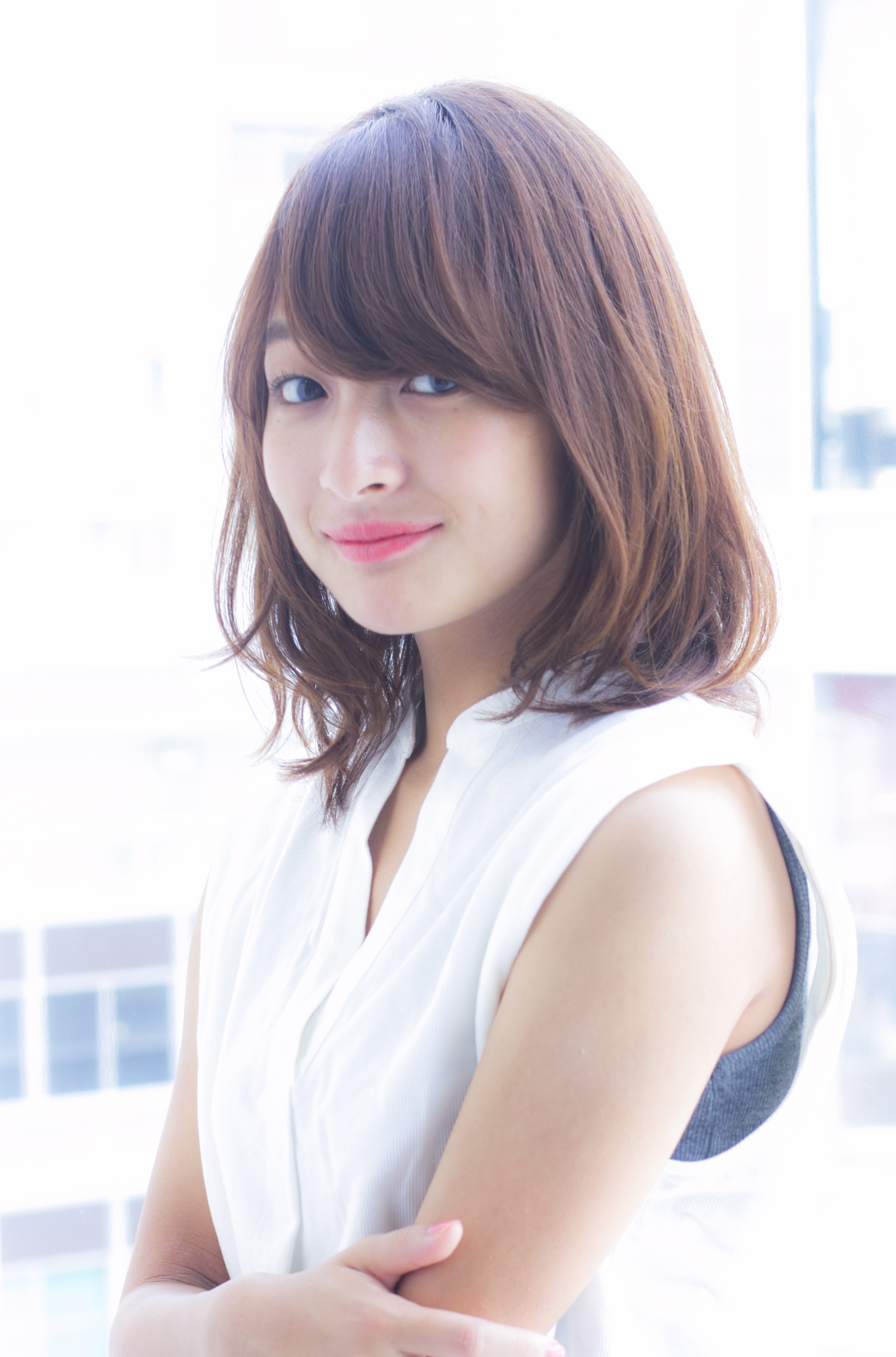重めのひし形ベースのミディアムスタイルです。表面に柔らかく動くような毛束が出るようにレイヤー(段)を入れて、間引きます。