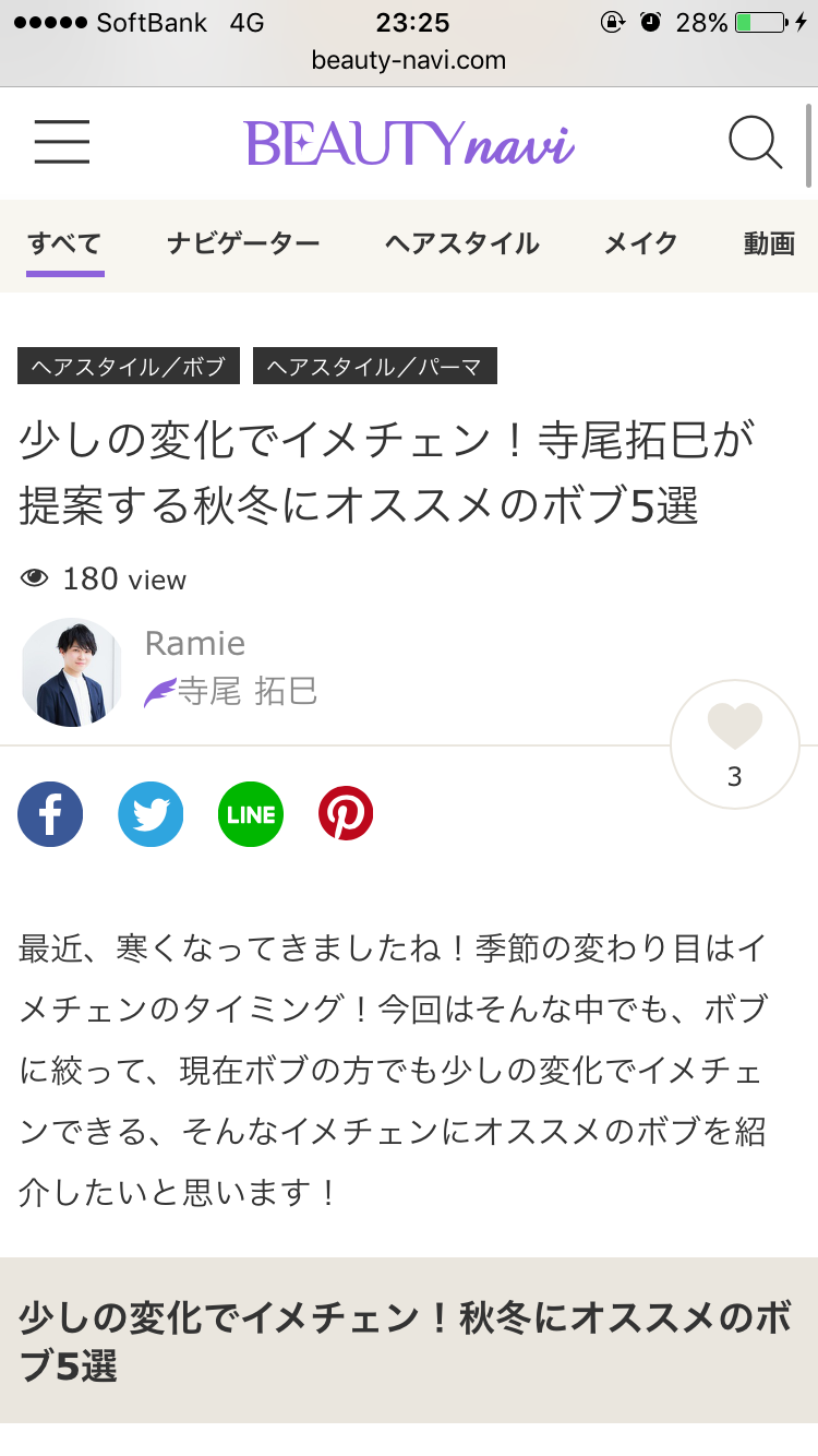 ナビゲーターを務めさせていただいている、Beauty-Naviさんで「ボブのイメチェン」紹介してます!