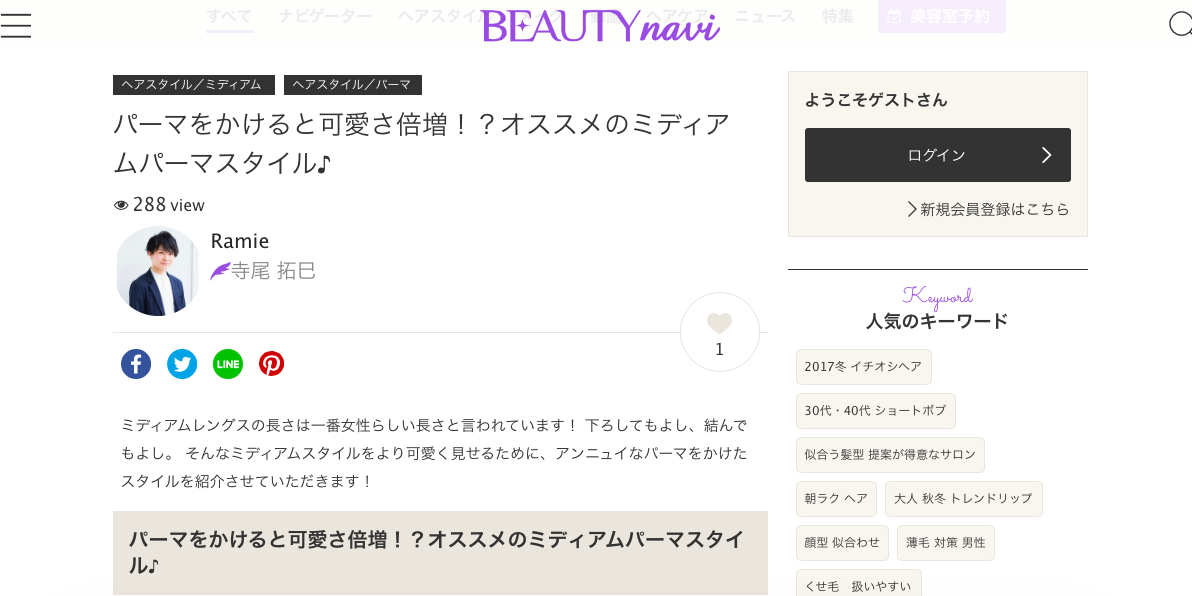 ナビゲーターを務めさせていただいているBeauty-Naviさんで、ミディアムパーマスタイルのオススメを書かせていただきました(^^)