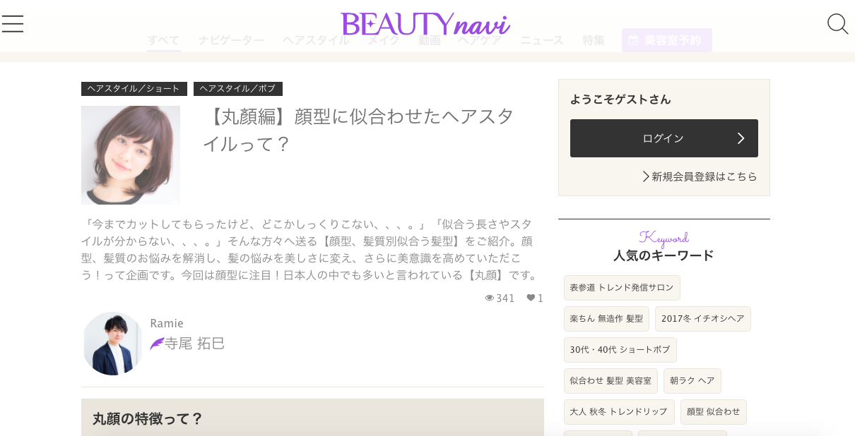 #Beauty-Naviさんで、丸顔さんの似合わせ記事書いてます♪