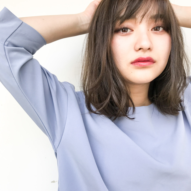 重めのミディアムスタイルですが、間引くような質感調整をして、柔らかいストレートパーマをかけることで、揺れるようなナチュラルな質感になります。