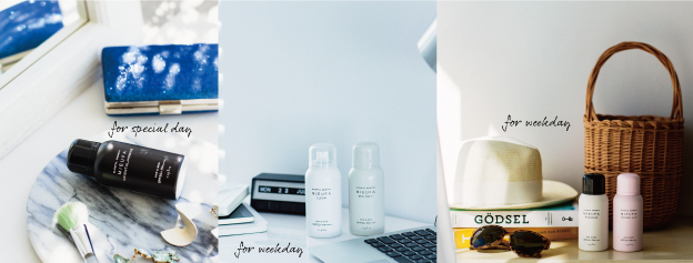 マグノリアは華やかで上品なオレンジフラワー、ジャスミンの香り。オリエンタルジャスミンは濃厚でオリエンタルなシトラスローズ、ジャスミンの香り。シーソルトはカモミールやヘリオトロープをアクセントにした優しいホワイトムスクの上品な香り。テンダーリリィはベルガモットとピーチフラワーが可憐な印象を与えます。クリアは香りの残らない無香料タイプで場所を選ばず幅広い方々にお使い頂けます。UVカット&フレグランスで賢いヘアケアを。