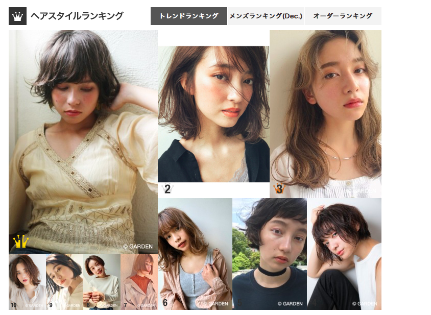 先日、GARDENヘアカタログのトレンドランキングにて、10位にランクインさせていただきました(^O^)/