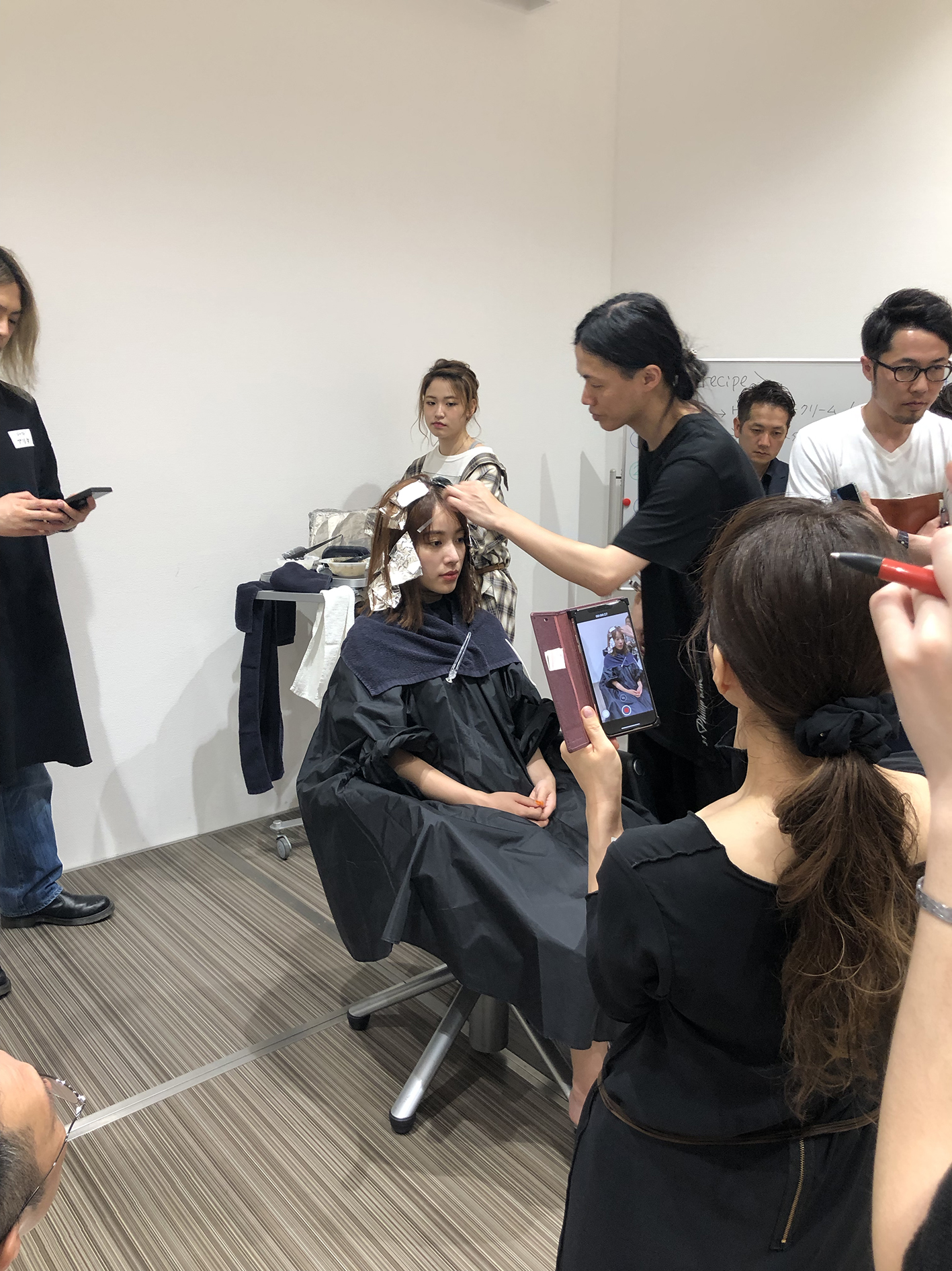 (セミナー受講、毛束実験の様子)