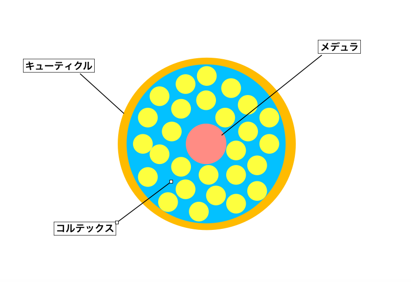 髪の断面図を簡単に書くと、こうなります。
