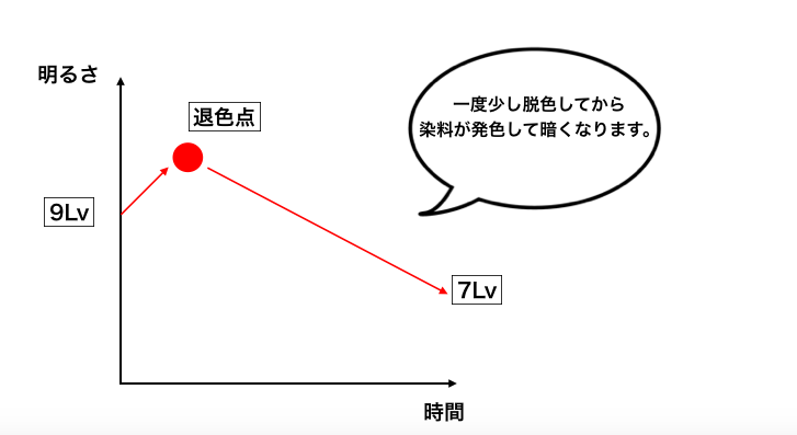 明るくする時の場合の方が、ブリーチ力を伴うため、色が退色した時に明るい状態に戻ることになります。