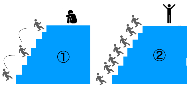 ②の方は1段ずつ、確実にゆっくりと階段を登っていくようなもの