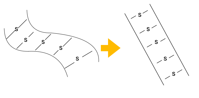 ストレートパーマ、縮毛矯正はお薬の力を使い、髪の中の結合を、一度切断します。