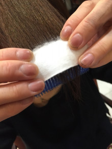 毛先を少し残してコットンで挟みます!