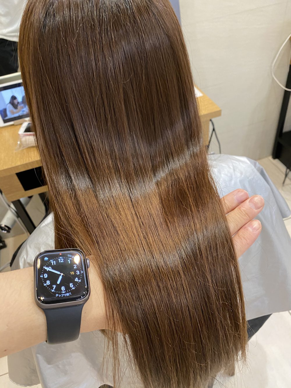 そうすることで髪に対してすごく優しい弱酸性の薬剤で癖をしっかりと伸ばしながら、髪を柔らかくストレートにすることができるようになりました!