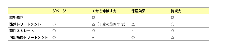 A 1度の施術で癖を伸ばすなら、縮毛矯正、酸性ストレート