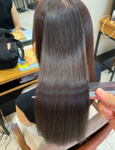 保湿しながら施術を進めていくので髪の柔らかさが従来のストレートパーマや縮毛矯正とは段違いです!トリートメントをしなくてもまるでトリートメントをしたような仕上がりになります!