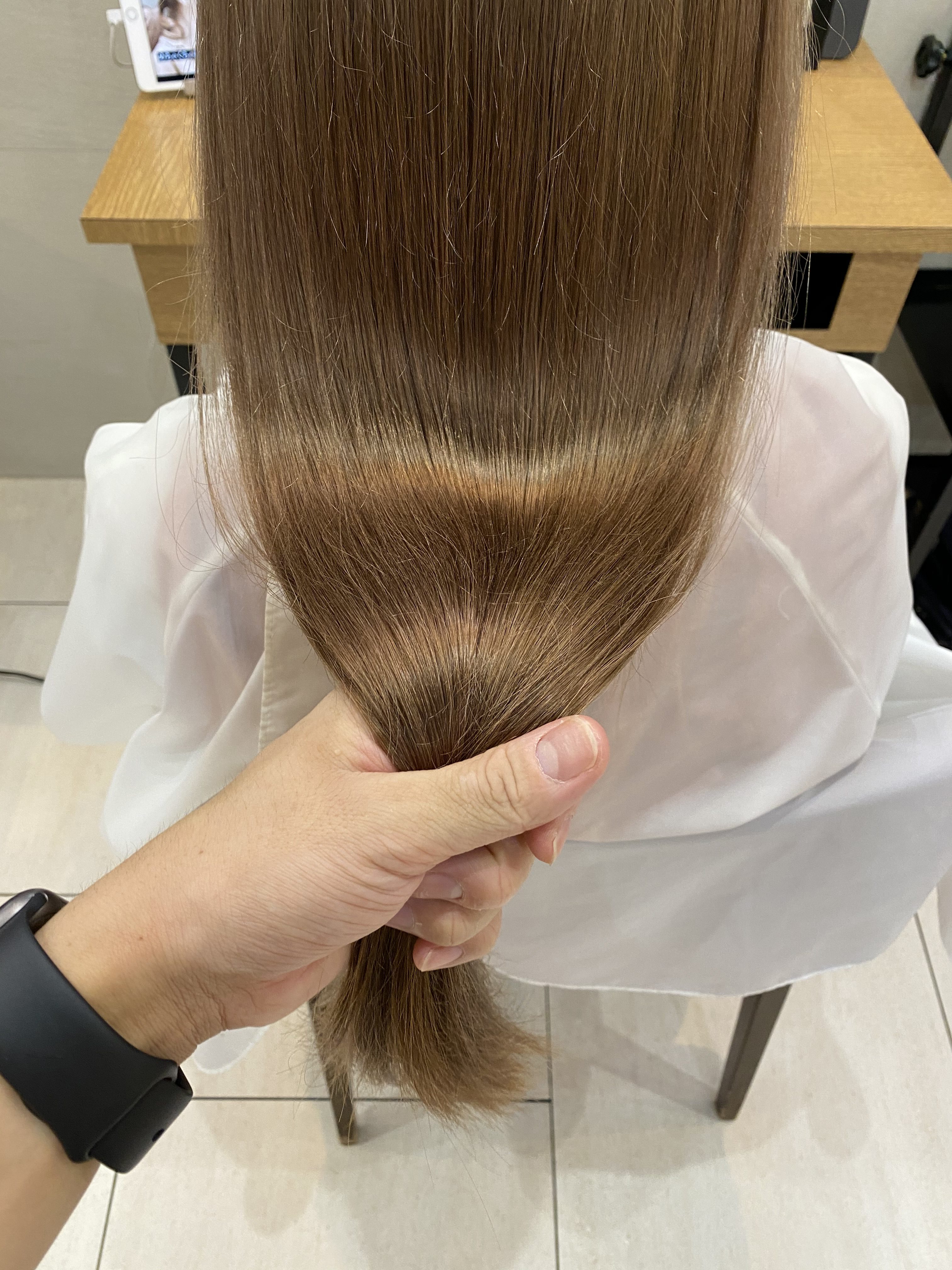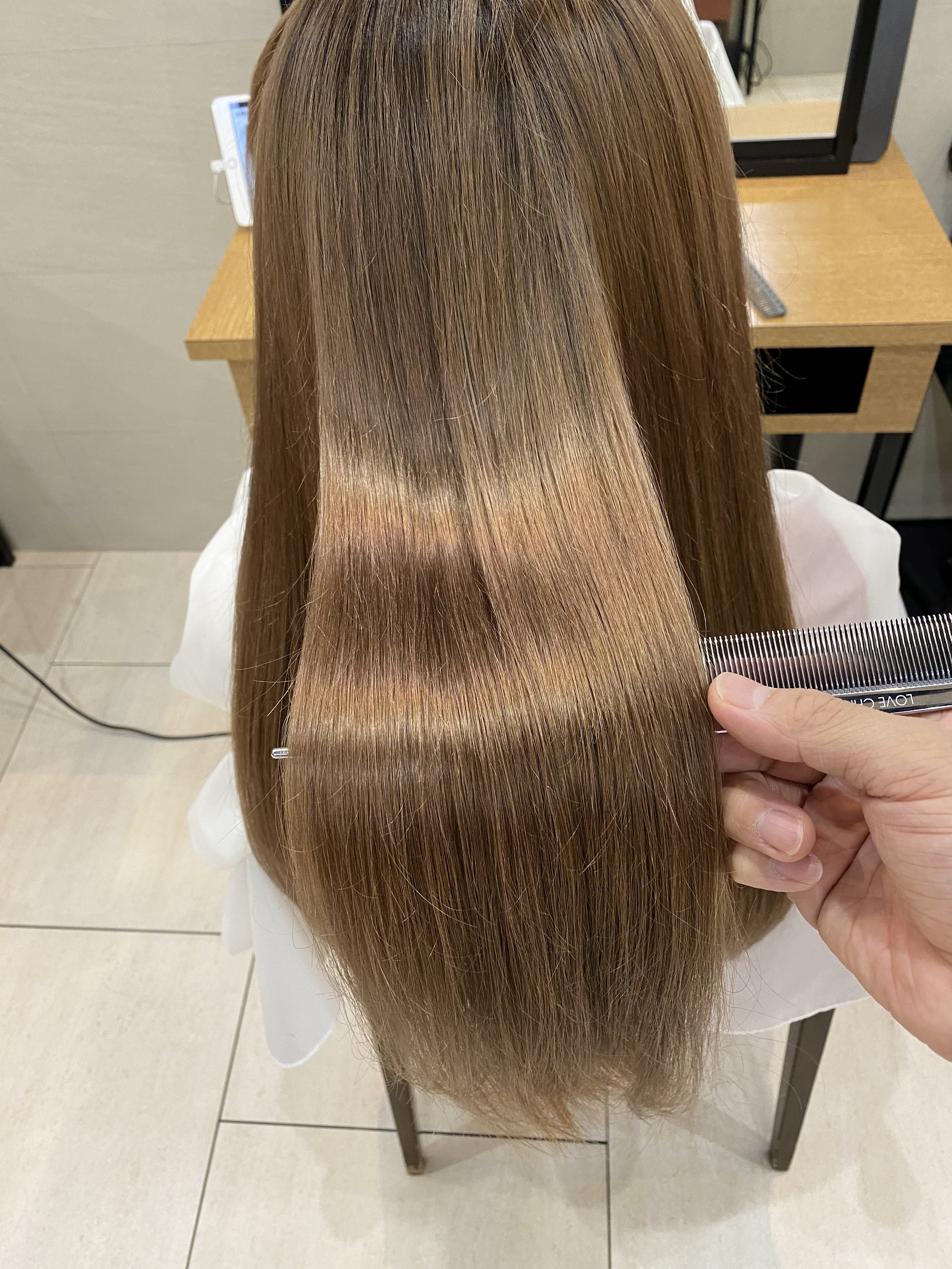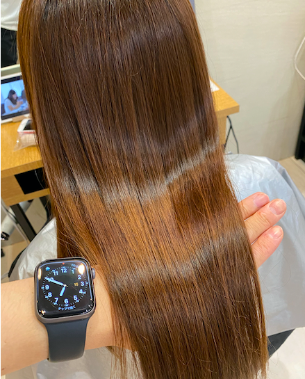 そうすることで、髪に対してすごく優しい弱酸性の薬剤で癖をしっかりと伸ばしながら、髪を柔らかくストレートにすることができるようになりました!