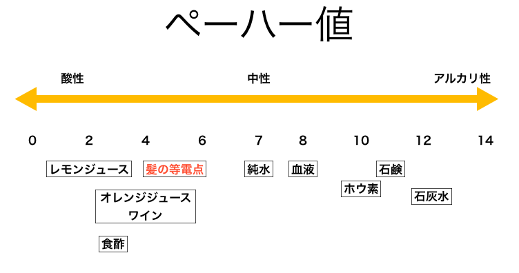 パーマ剤やカラー剤はアルカリ性のため、施術後に毛髪はアルカリに傾いていることがほとんどです。