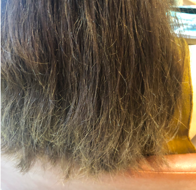 こちらは毛髪判断ができておらず水素トリートメント(酸性のトリートメント)を重ねすぎたことが原因です。