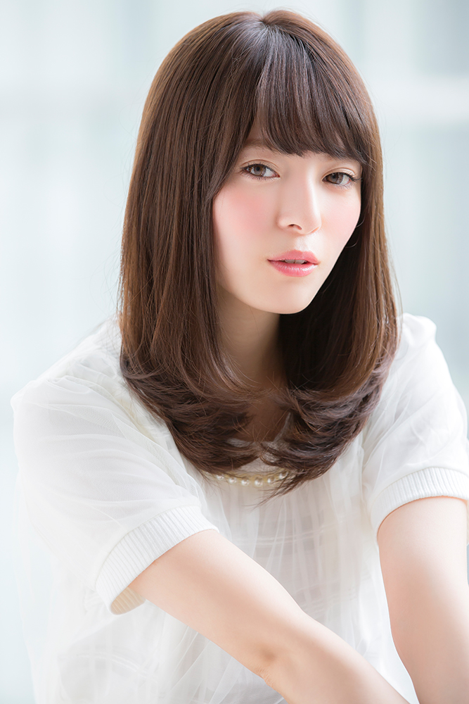 前髪は基本的に重めのスタイルですが、顔型、目の位置、顎先の高さの3つのバランスを見て、前髪の厚さ、幅、奥行きを決めると、とてもバランスのいいスタイルになります♪
